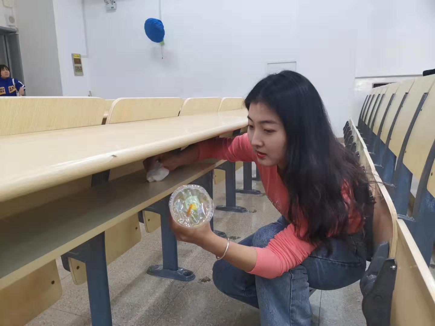 活动中,大家积极发挥不怕脏、不怕累的精神,分工合作各负其责,全力投入到卫生清扫工作中,认真细致地打扫阶梯教室中的杂物,清理卫生死角、桌膛内、垃圾桶等。同时,还有其他同学也自觉加入到整治环境的行列中,用行动为创造良好的环境卫生贡献自己的力量。通过这次集中活动,不但改善了教室环境卫生状况,还带动全体同学增强了环境保洁意识,为共同创造洁净、优美、舒适的学习生活环境贡献了自己的力量。