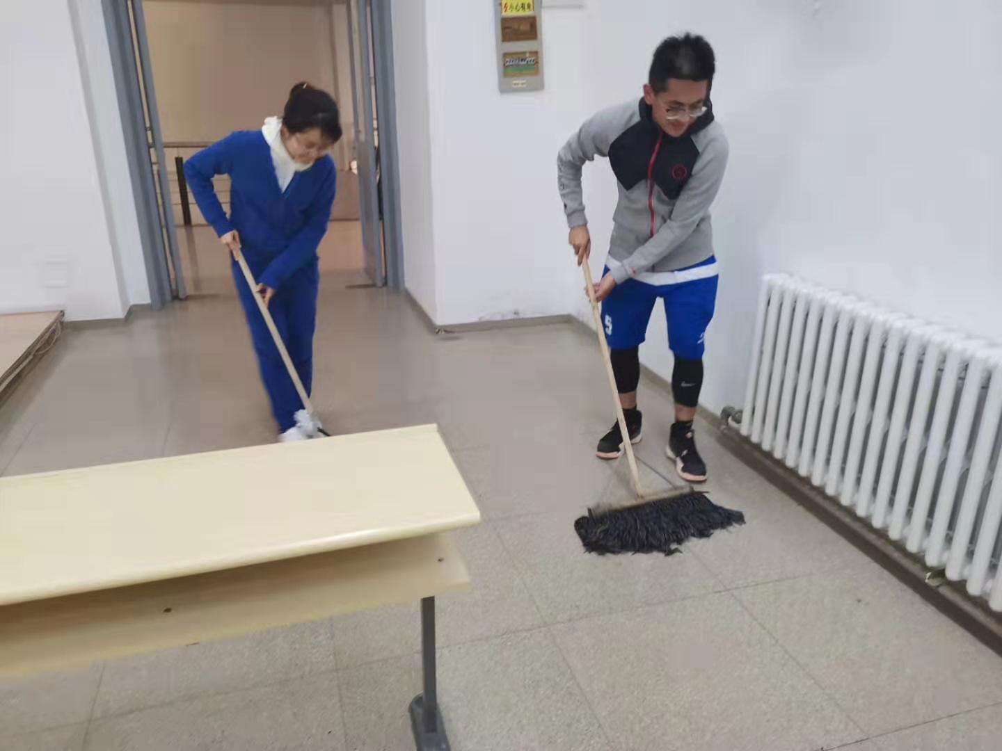 2019级第三党支部全体党员在逸夫楼十六阶梯教室政治课学习结束后,全体党员开展了“不忘初心、牢记使命”主题教育中的志愿服务活动。在一下午四节课过后,为同学们打扫教室的卫生,用实际行动践行党员干部的初心和使命,为建设文明校园添砖加瓦。