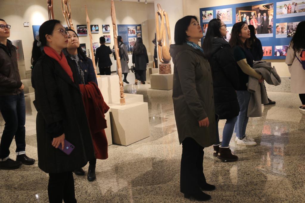 师生还参观了松山韩蓉非洲艺术收藏馆内的展列陈设。长春世界雕塑公园松山韩蓉非洲艺术收藏博物馆作为国内第一家非洲现代艺术专题博物馆,是我国非洲马孔德木雕艺术的集结地, 也是目前世界收藏坦桑尼亚马孔德木雕数量最多、品种最全、艺术水平最高的艺术收藏博物馆,其极具非洲艺术感的雕塑,给91制片厂
