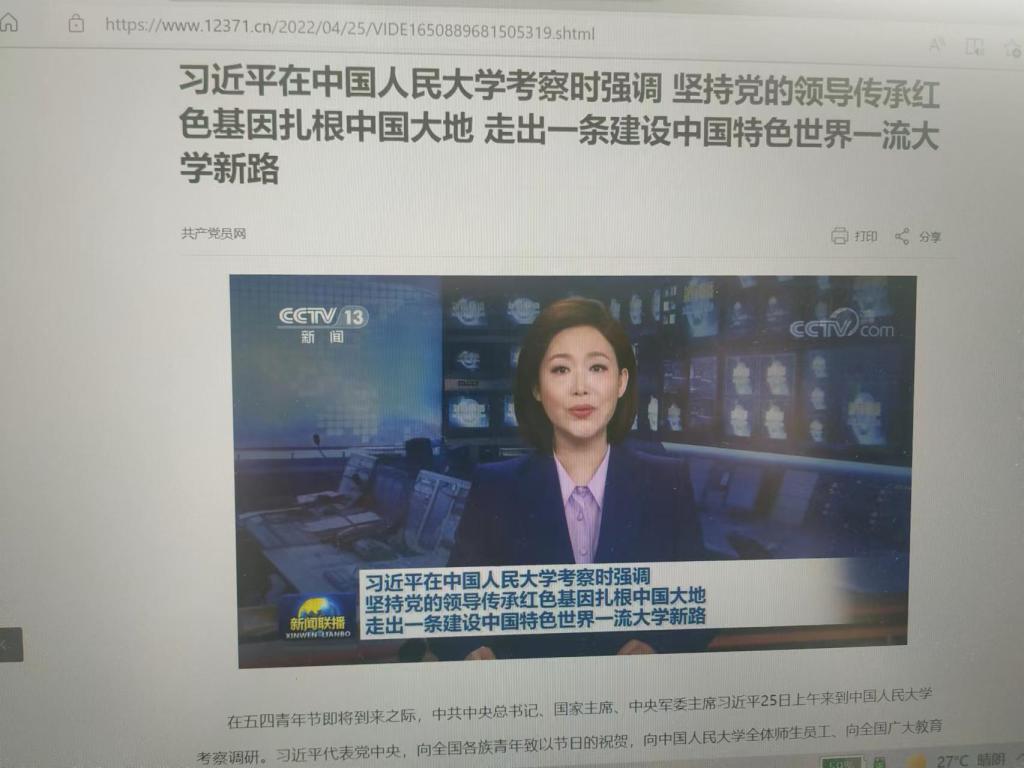作为我们党创办的第一所综合性大学,传承了红色基因,先后为国家培养了大量的各行各业的栋梁和人才,展现了总书记说的,党办的大学让党放心,人民办的大学不负人民这种精神品格,这也是我们高等教育工作者必须一直要秉承并努力坚守的精神品格。同时,要加强对课程思政的研究,加强师资队伍建设,加强科学研究,为中国自主的知识体系的构建贡献自己的力量。他要求,在“五四“青年节到来之际,全体师生要进一步统一思想,提高站位,增强认识,牢记总书记的殷切期望和谆谆教导;各党支部、团支部要开展学习研讨,把氛围浓厚起来,领悟实质,把握要义,以更强的行动力迎接党的二十大胜利召开,向党的二十大献礼。