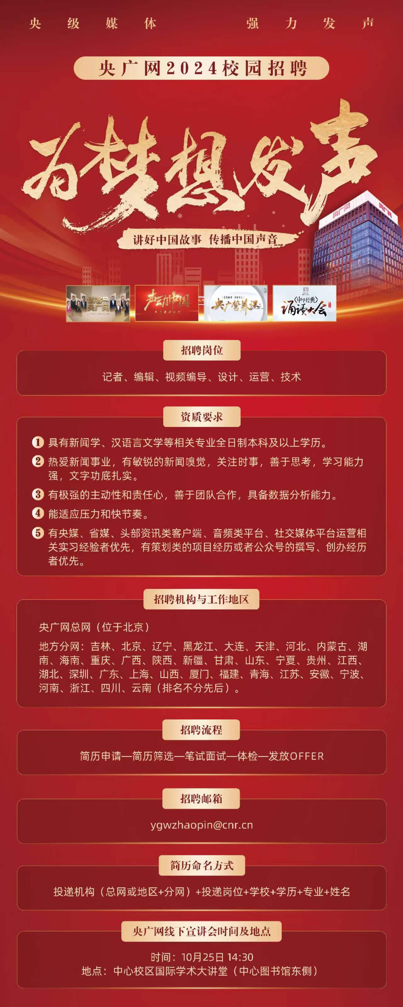 中央广播电视总台 · 央广网 2024届校园招聘通知