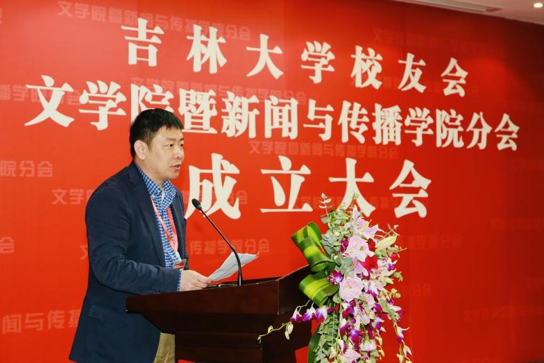 暨新闻与传播学院院长张丛皞向大会介绍了学院在北京、深圳等地已成立的校友分会,以及校友会在学院招生宣传、校企合作、学生就业等多方面的协助和帮助,同时提出了此次校友分会成立的目的和意义,并对各位校友多年来的支持与贡献表达衷心的感谢。