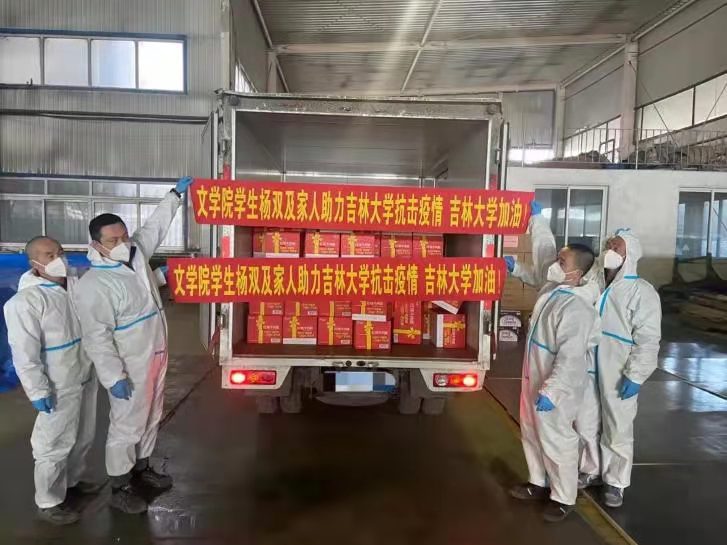 2020级研究生杨双就是其中一员。3月13日,尽管自己还被隔离在外,但听闻封校消息后,她第一时间就想为母校尽一份力。“做公益很好,但需要自己承担。”杨双毫不犹豫地拿出积攒多年的“小金库”,在家人和朋友的帮助下,用最快的速度将200箱泡面、70箱火腿肠和能勾兑150吨消毒液的原液送往学校。“这是我在吉大的第6年,母校改变了我的人生,让我变得有理想、有信念,所以学校遇到任何困难,我一定会努力冲在最前面。”杨双认真地说道。