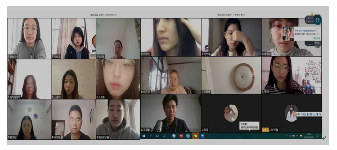 姜老师对同学们看过的一些作品给出了自己的解读,还给同学们分享了合适的书单。大家分享了各自对于未来的规划,姜老师也耐心地给予了建议,同学们都受益匪浅。2018级播音与主持艺术专业的师生们采用了视频连线的方式进行此次班会。首先大家交流了彼此的假期生活,有的同学利用假期充实知识,有的同学利用假期锻炼身体,有的同学利用假期培养兴趣爱好。接下来,大家互相分享了自己通过各种方式了解到的抗击疫情的故事。张芳馨老师对本次班会进行了总结,她首先对同学们在班会中的表现提出表扬,并对大家接下来在家进行网络学习的方式进行了指导和建议,张老师鼓励大家要坚定信心,克服困难,争取早日在美丽的吉大校园里和大家相见!228日下午2点,2018级编导班在王亮老师的带领下通过腾讯会议举办班会。首先,王亮老师关心问候了每名同学,接着给大家讲解了口罩的正确使用方法,又向大家叮嘱了疫情期间的防护措施。接下来,由班长卢红燕主持了班会的交流分享环节。大家积极发言互动,与老师同学畅谈自己在疫情期间观看的影片、影视节目。随后,同学们彼此分享了自己在抗疫时期的感受。