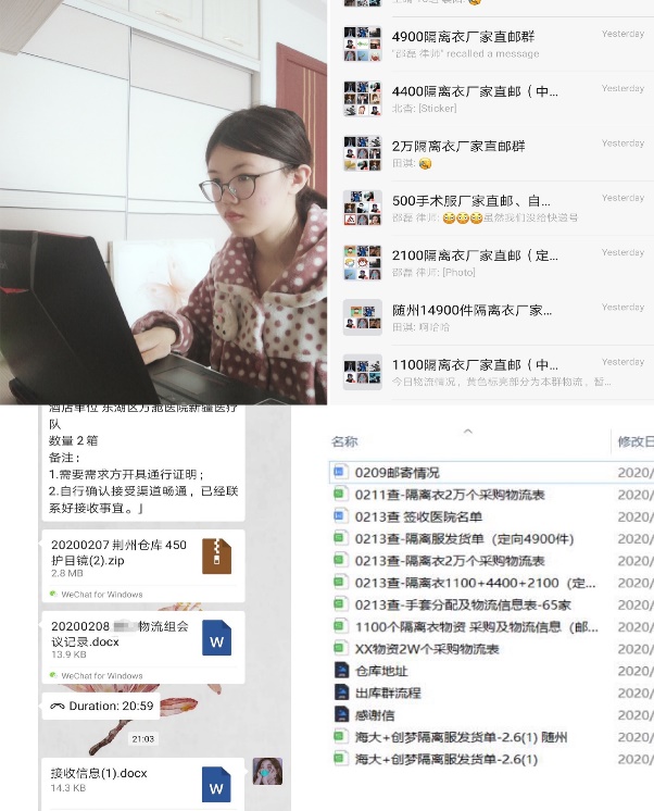 2017级庄璐同学加入到天津自家社区防疫站,积极参与疫情防控宣传,利用专业特长为社区每天录制各类宣传语和疫情防控措施等内容。在夜晚中午的时候,加入到繁忙的登记测温的队伍中,为社区工作者多争取些吃饭休息的时间。2017级贾培峰同学主动加入家乡巴彦淖尔市乌拉特中旗村委会防疫战中,帮助村子封锁道路、严查过往车辆、清理生活垃圾和跟随运输的车辆送物资,和村民清理积雪,开辟出一条通往山里的路,成为村中快递员+宣传员,根据村民电话中的需求,将物资送到他们的家中,为村民们普及最新的疫情发展的信息。2017级黄灏同学加入“高原鹅”高校学生援鄂行动、“武心援”志愿团队两个志愿服务组织,在团队中主要负责收集信息,沟通联络志愿者、厂家、海外代购等渠道,以及检验已有资源,共享信息等工作。加入以来,该生与十余名志愿者成功沟通了解,分享信息。与四个厂家进行联系,积极从联系海外渠道筹备抗疫物资,收集物资提供有用信息。并从线上为一些患者答疑,缓解患者紧张情绪。