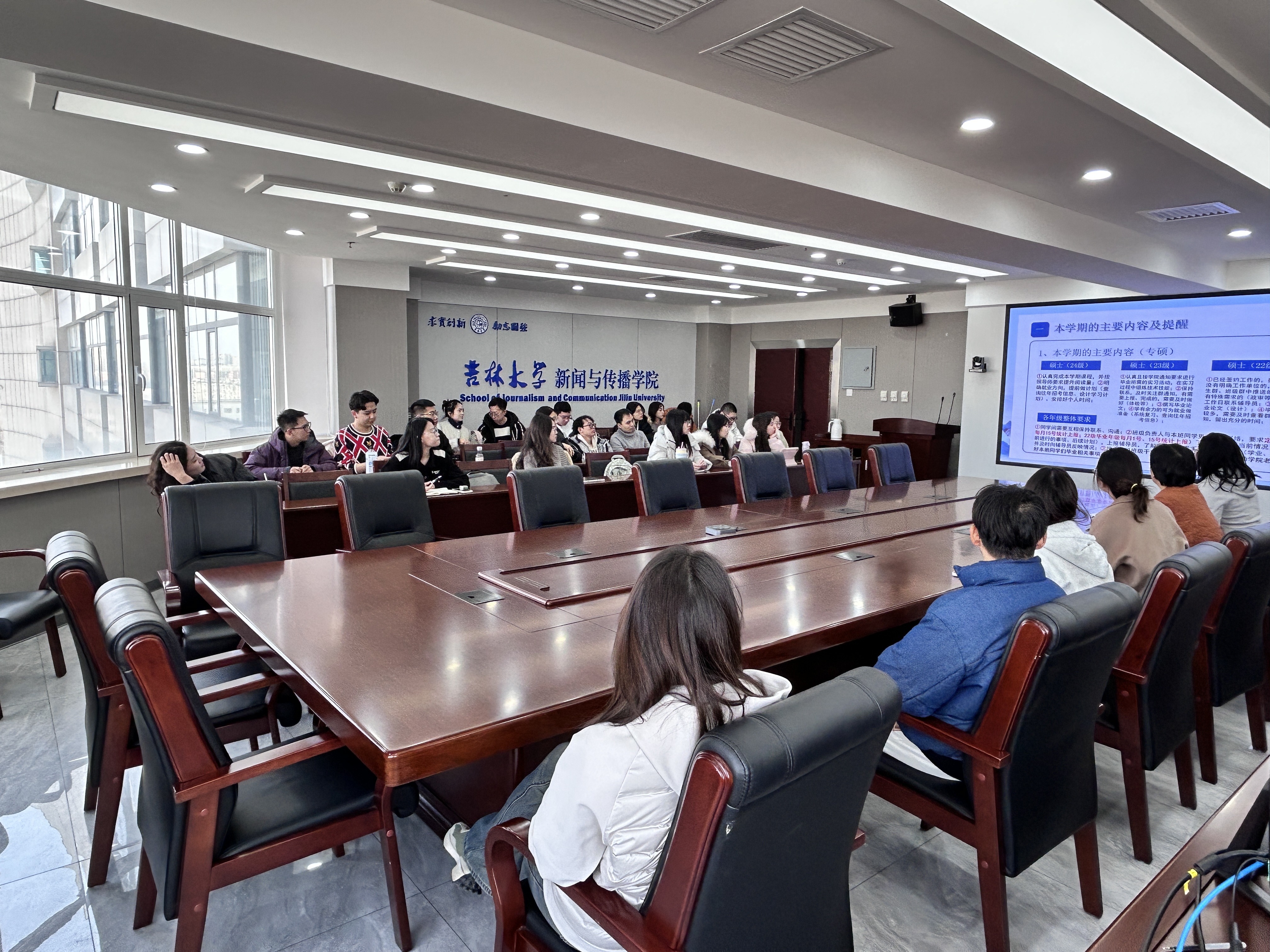 党委副书记兼纪委书记刘卓老师、研究生辅导员李沐函老师出席会议。此次会议旨在为新学期的研究生工作指明方向,解决同学们面临的实际问题,确保同学们能够顺利完成学业,实现高质量就业。