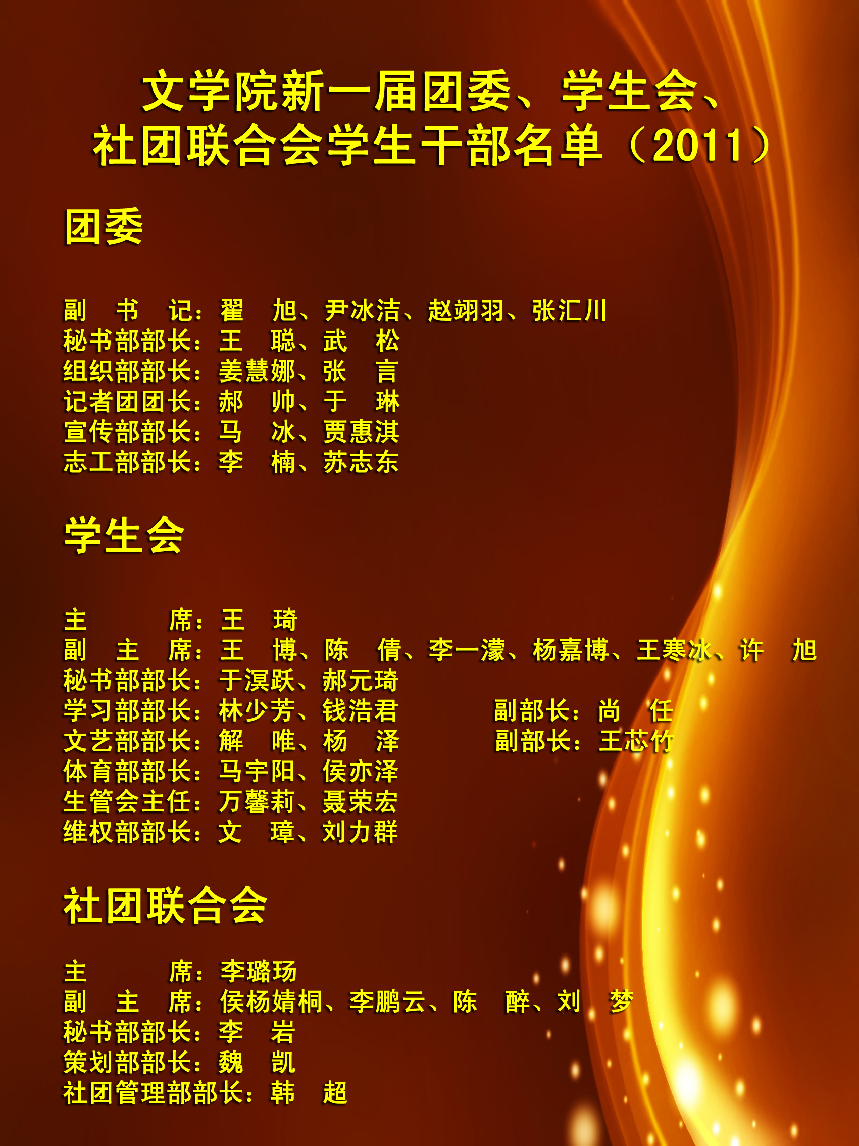 91制片厂 新一届团委、学生会、社团联合会名单(2011)